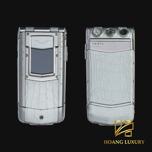 Vertu Ayxta da cá sấu trắng kim cương sinh ra là để dành cho những quý ông đẳng cấp, những quý bà sang trọng bởi chiếc áo choàng màu trắng thanh lịch đến từ lớp da cá sấu mềm mịn, độc nhất vô nhị. Hơn thế, máy còn được gắn kim cương lấp lánh, góp phần tôn vinh lên vẻ đẹp sang trọng của chủ sở hữu. Thêm vào đó, màn hình và phím bấm được làm từ Sapphire, có khả năng chống xước gần như tuyệt đối trừ kim cương. Và vẫn là huyền thoại Ayxta khi thao tác đóng mở máy hoàn toàn đơn giản, dễ dàng nhờ hệ thống lò xo và chốt cầu thép không gỉ, bàn phím điêu khắc tỉ mỉ cùng hệ thống chiếu sáng âm phím xuyên thép tạo hiệu ứng vô cùng độc đáo mà hiếm có một sản phẩm công nghệ nào có thể làm được đã biến Ayxta thành một kiệt tác nghệ thuật bất chấp không gian và thời gian.